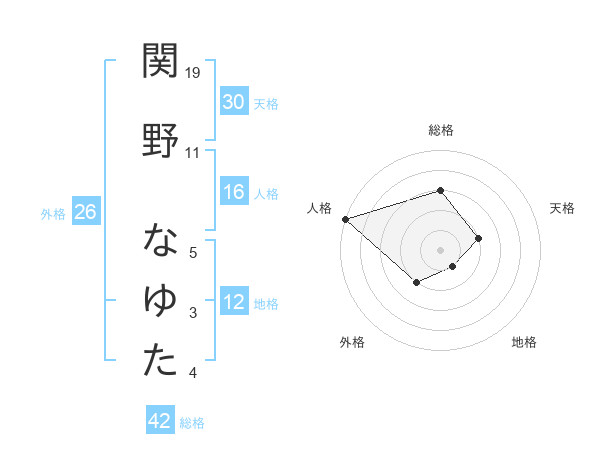 関野 なゆたさんを姓名の画数から五運を鑑定