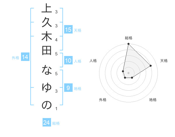 上久木田 なゆのさんの天格は15画の4点!