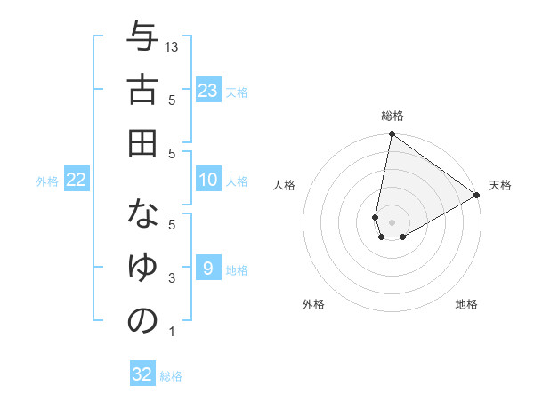 与古田 なゆのさんを姓名の画数から五運を鑑定