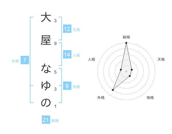 大屋 なゆのさんの総格は21画の5点!