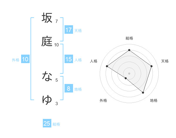 坂庭 なゆさんの総格は25画の4点!