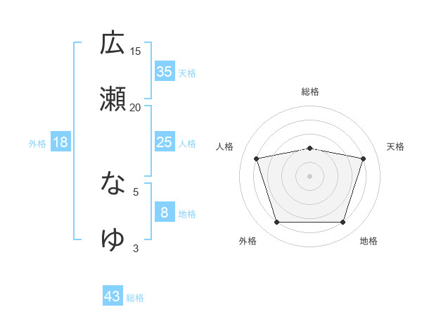 広瀬 なゆさんを姓名の画数から五運を鑑定