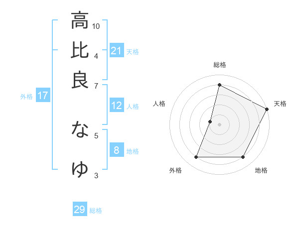 高比良 なゆさんの天格は21画の5点!