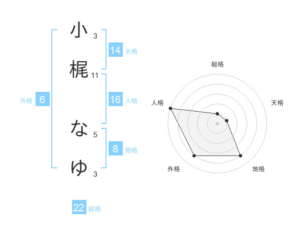 小梶 なゆさんの外格は6画の4点!
