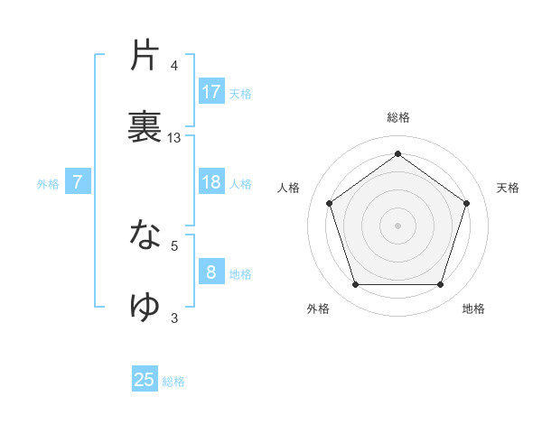 片裏 なゆさんの総格は25画の4点!