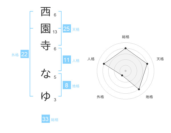 西園寺 なゆさんを姓名の画数から五運を鑑定