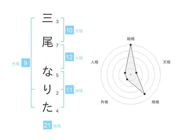 三尾 なりたさんを姓名の画数から五運を鑑定