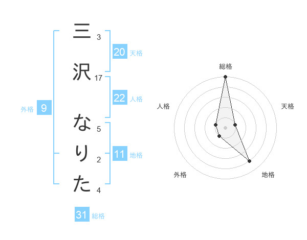 三沢 なりたさんを姓名の画数から五運を鑑定