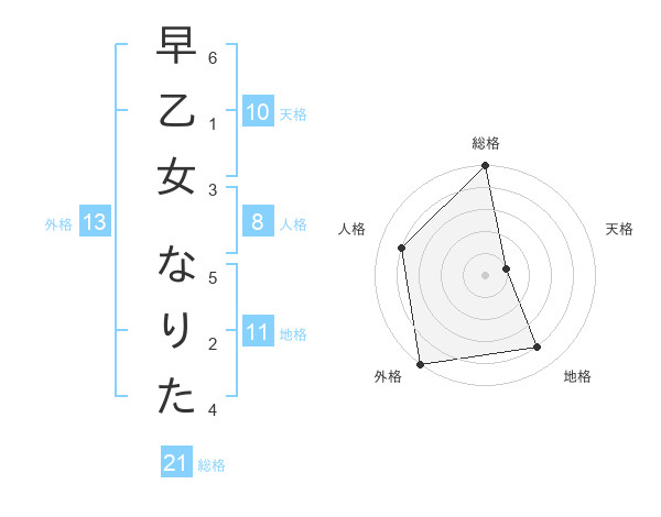 早乙女 なりたさんを姓名の画数から五運を鑑定