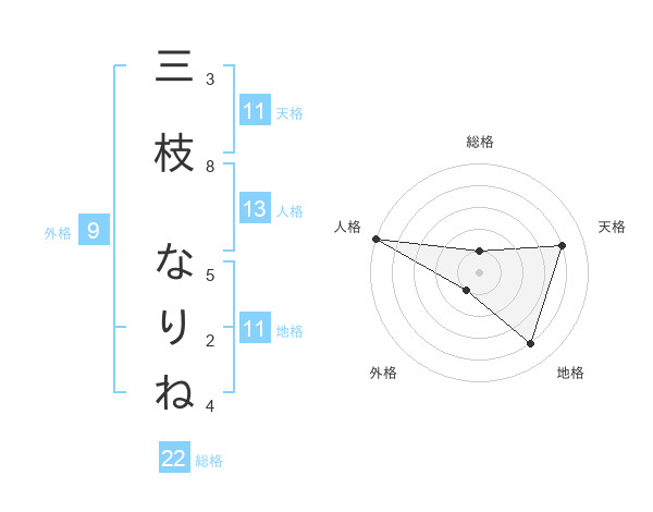 三枝 なりねさんを姓名の画数から五運を鑑定