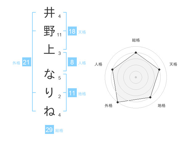 井野上 なりねさんを姓名の画数から五運を鑑定