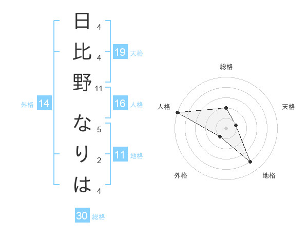 日比野 なりはさんを姓名の画数から五運を鑑定