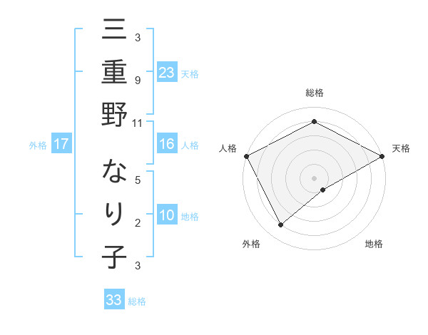 三重野 なり子さんを姓名の画数から五運を鑑定