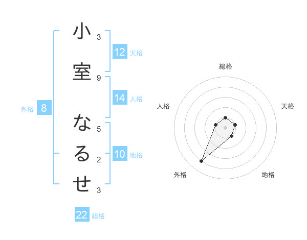 小室 なるせさんの総格は22画の1点!