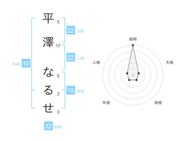 平澤 なるせさんの総格は32画の5点!