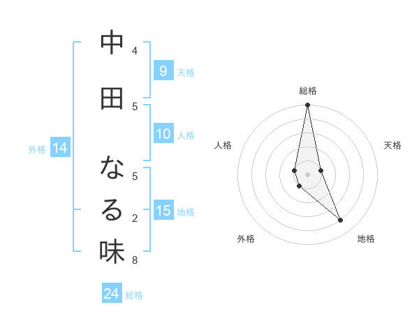 中田 なる味さんの総格は24画の5点