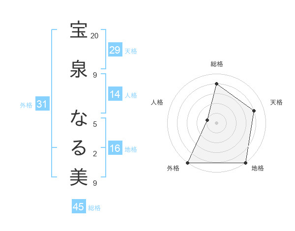 宝泉 なる美さんを姓名の画数から五運を鑑定
