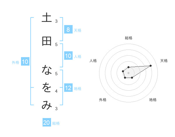 土田 なをみさんの総格は20画の1点!