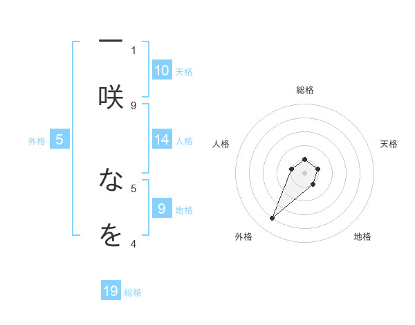 一咲 なをさんを姓名の画数から五運を鑑定