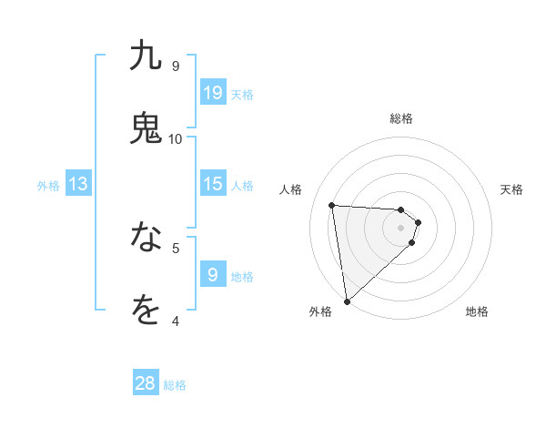 九鬼 なをさんの外格は13画の5点!