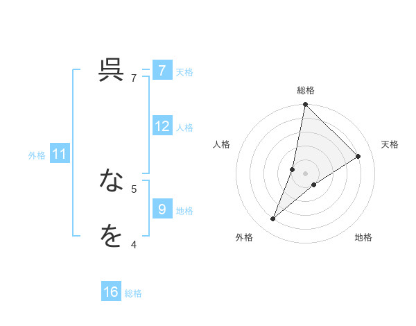 呉 なをさんの外格は11画の4点!