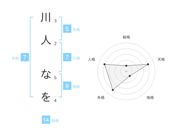 川人 なをさんの外格は7画の4点!