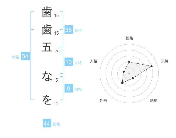 歯歯五 なをさんを姓名の画数から五運を鑑定