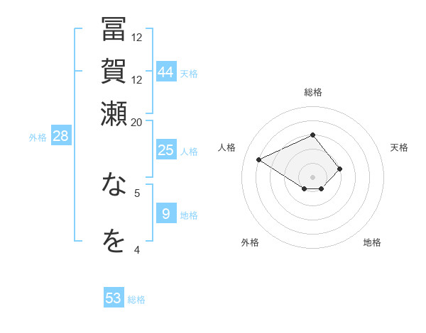 冨賀瀬 なをさんを姓名の画数から五運を鑑定