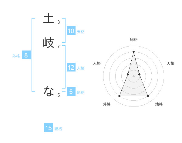 土岐 なさんの総格は15画の4点!