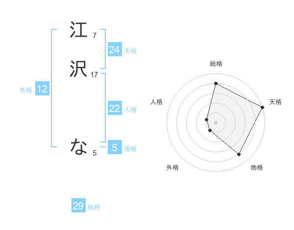 江沢 なさんの総格は29画の4点!