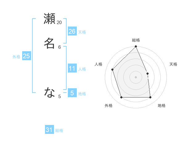 瀬名 なさんの総格は31画の5点!