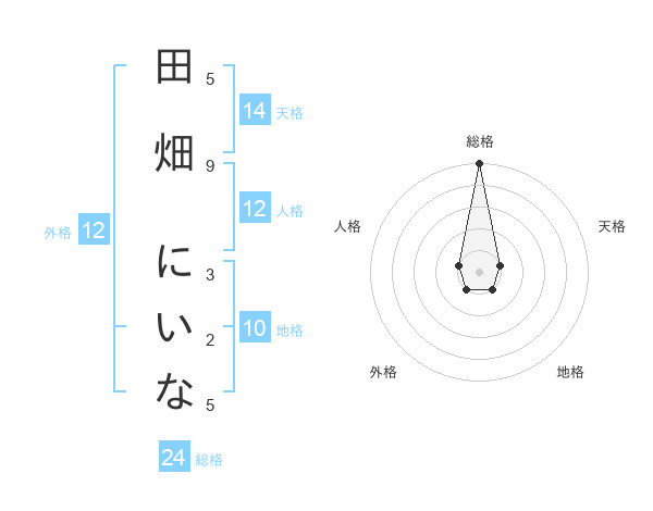 田畑 にいなさんを姓名の画数から五運を鑑定