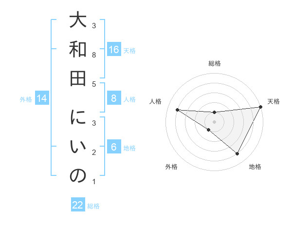 大和田 にいのさんの総格は22画の1点!