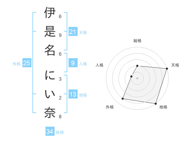 伊是名 にい奈さんの総格は34画の2点!