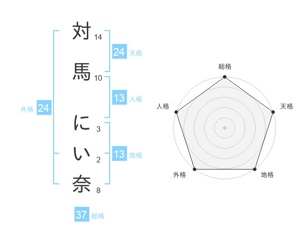 対馬 にい奈さんを姓名の画数から五運を鑑定