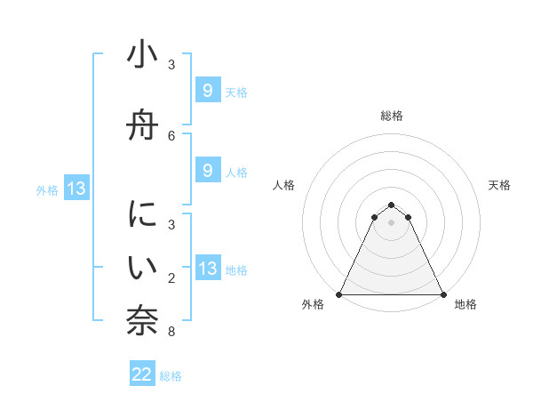小舟 にい奈さんの外格は13画の5点!