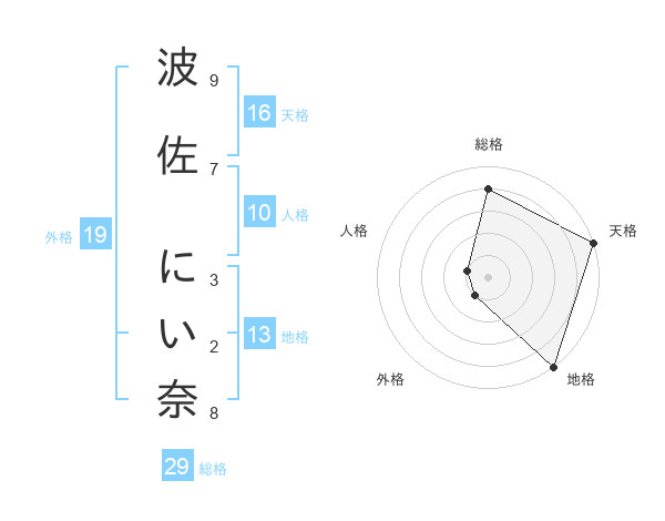 波佐 にい奈さんの総格は29画の4点!