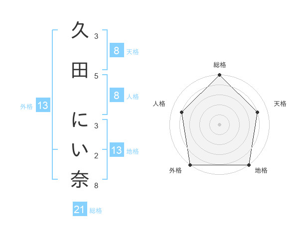 久田 にい奈さんを姓名の画数から五運を鑑定