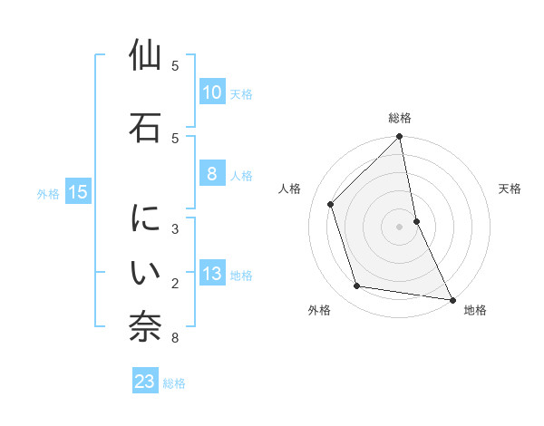 仙石 にい奈さんの総格は23画の5点