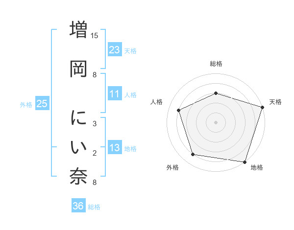 増岡 にい奈さんを姓名の画数から五運を鑑定