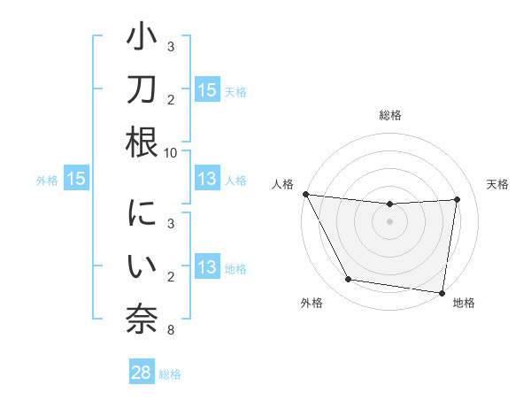 小刀根 にい奈さんを姓名の画数から五運を鑑定