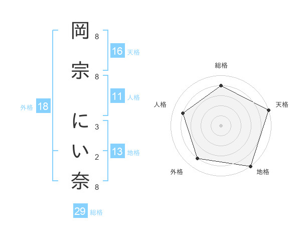 岡宗 にい奈さんを姓名の画数から五運を鑑定
