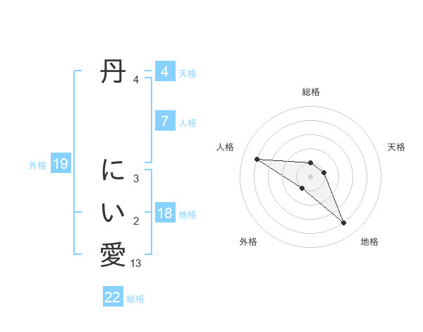 丹 にい愛さんを姓名の画数から五運を鑑定