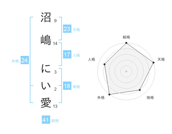 沼嶋 にい愛さんを姓名の画数から五運を鑑定