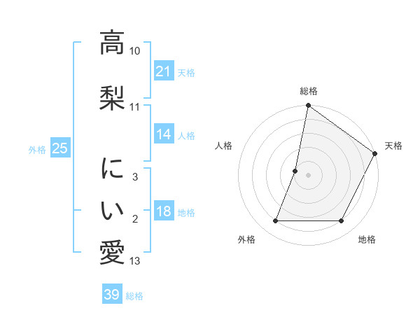 高梨 にい愛さんの総格は39画の5点!