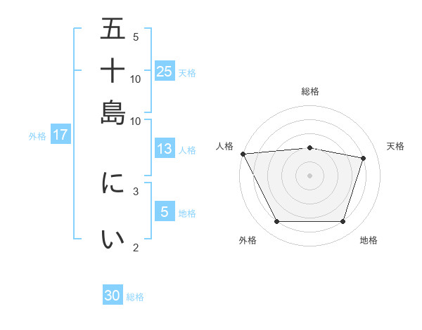五十島 にいさんの人格は13画の5点!
