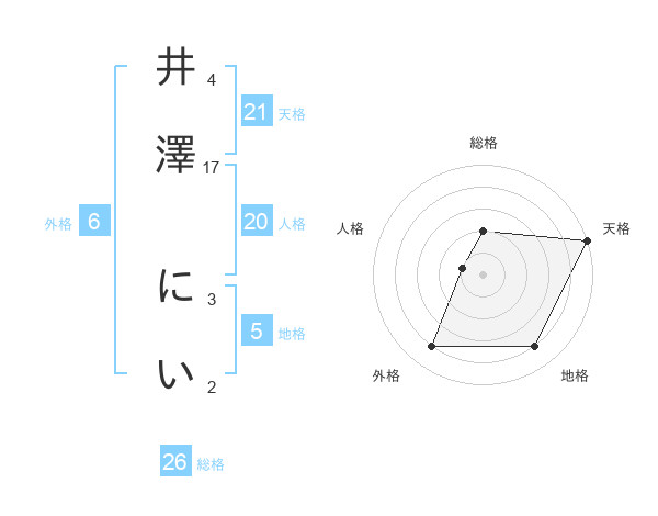 井澤 にいさんの地格は5画の4点!