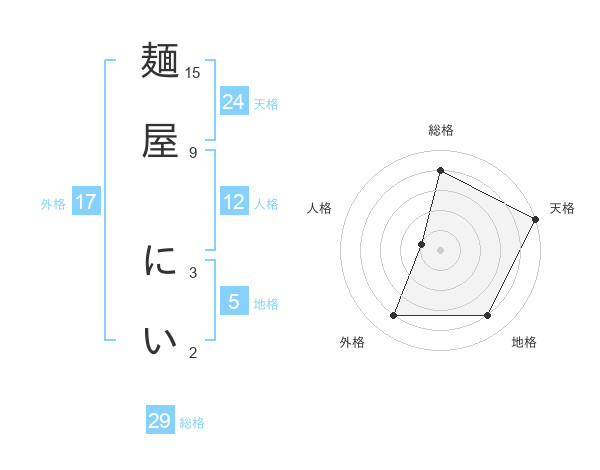 麺屋 にいさんを姓名の画数から五運を鑑定