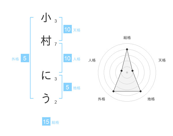 小村 にうさんの総格は15画の4点!
