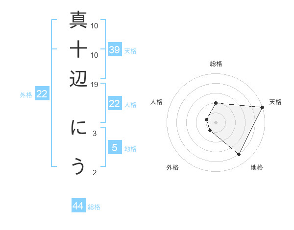 真十辺 にうさんの天格は39画の5点!